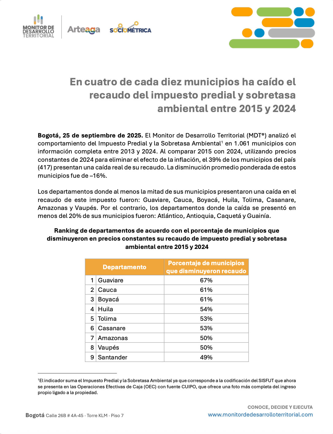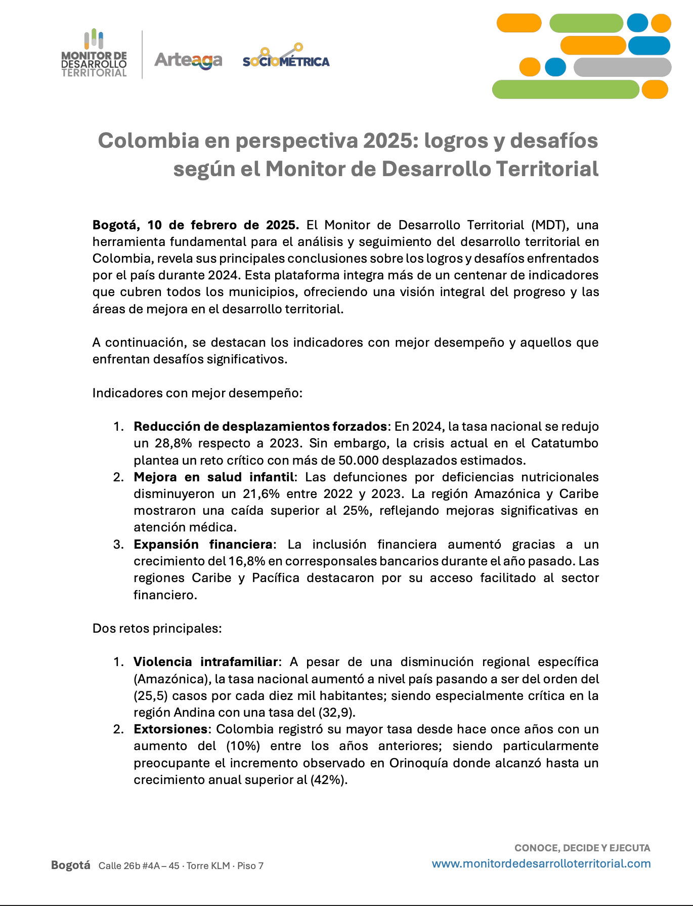 Logros y desafíos según el Monitor de Desarrollo Territorial - Febrero 2025