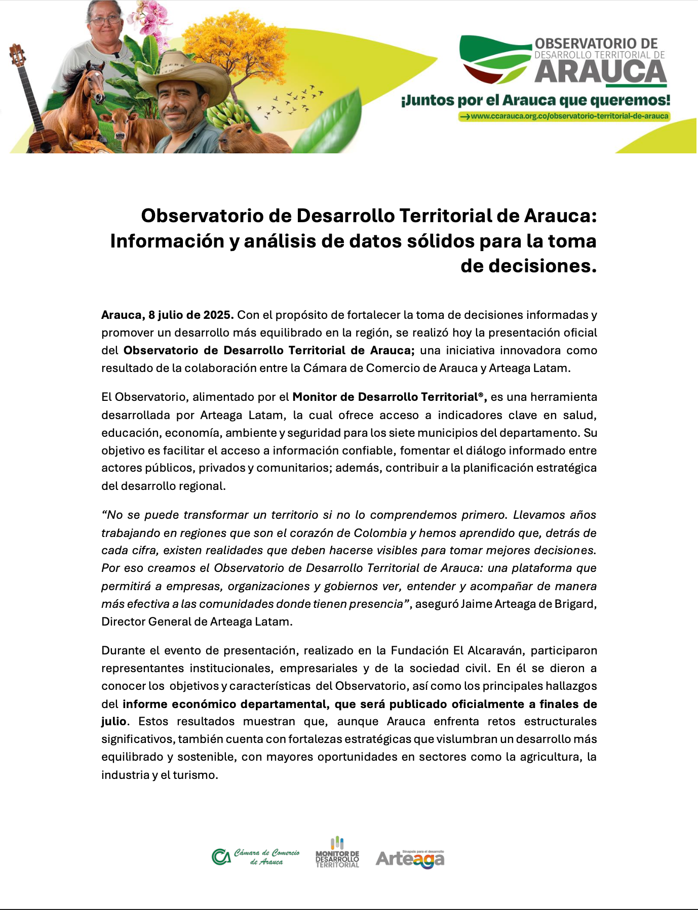 Observatorio de Desarrollo Territorial de Arauca - CCARAUCA - Julio 2025